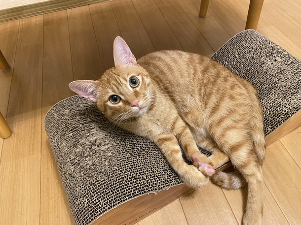 現在悪い部分は子猫の時にケガをし腕を縛られたまま成長したためか足先の骨が変形しているような感じでそこが歩いている時に微妙に地面に当たっているようで、激しい動きをしたり爪研ぎの後に出血してしまう事があります。