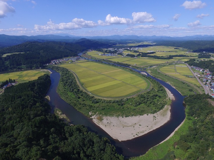 鮭川村は、日本で唯一自治体名に「鮭」が入っている村です。名前の通り、村の中央を流れる「鮭川」には今も鮭が上ります。鮭川は国土交通省が発表する「最も水質が良好な川」にも選ばれており(令和元年度、日本で17河川のみ)、川を育む広葉樹の森も含め、素晴らしい自然環境が残っている地域です。海から60㎞上流の雪深いこの村では、鮭は厳しい冬を支える貴重なタンパク源として縄文時代から食べられてきました。現在は支流の泉田川において鮭の人工孵化事業が行われており、そこで命を繋いだ後の鮭を食べる文化が残っています。泉田川合流部から上流では野生の鮭も数多く存在しており、人と自然のバランスがとれた美しい村です。