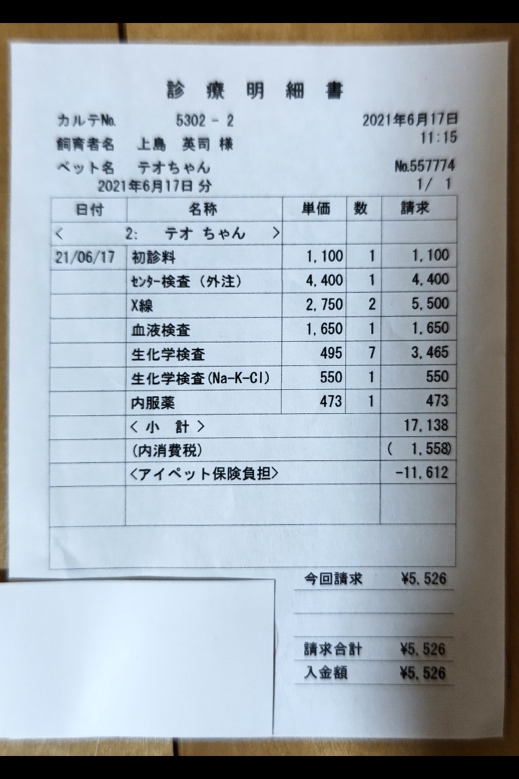 今日、通院している動物病院の院長先生から電話を頂き、先日の検査結果が出ました。