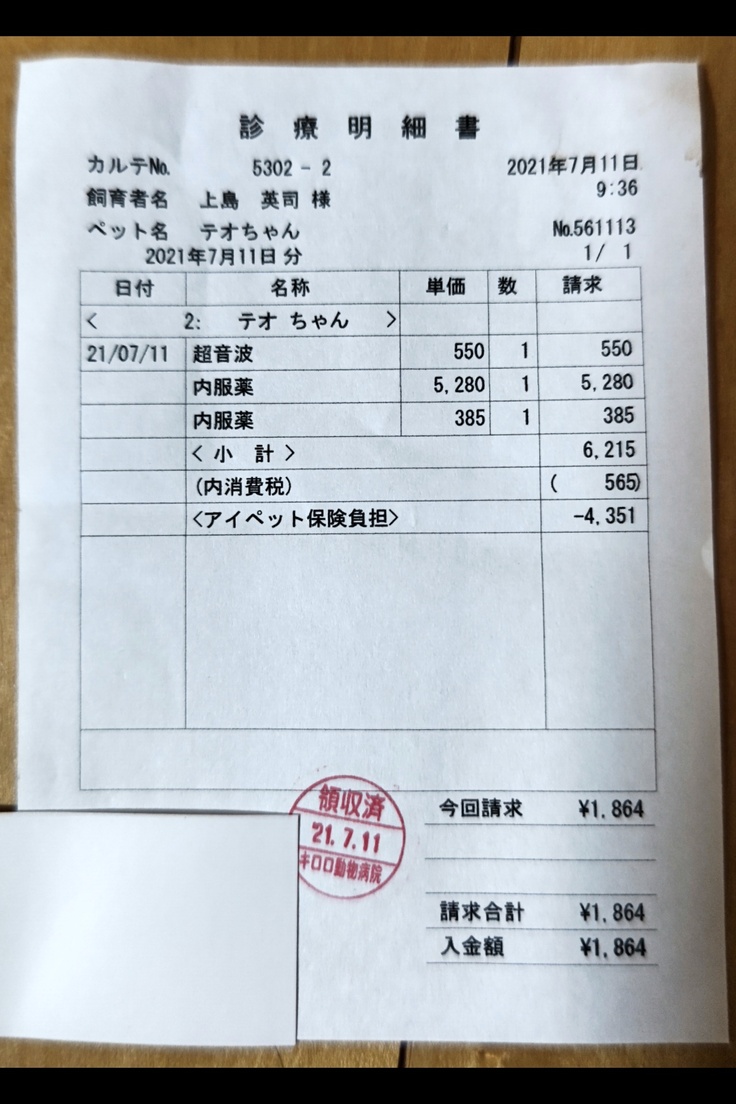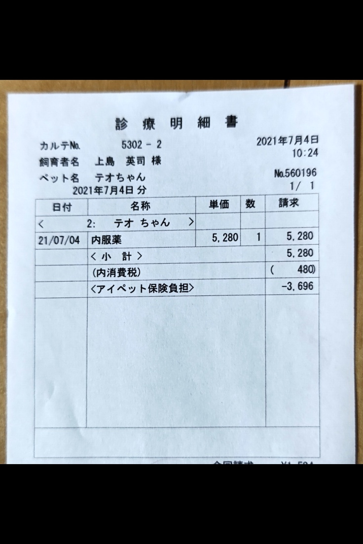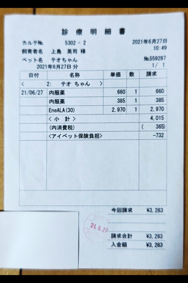 投薬量が500mgに増量した辺りから嫌がる素振りをし出し始めていたのですが、遂にやらかしましたっ! 4錠数万円する薬を投薬から15分後… 隣の部屋から「ゲフッ ゲフッ 」 慌てて妻がテオの元にダッシュ! ギリギリセーフでペットシートをテオの顔元に滑り込ませ、シートの上に「ゴフッ」と… 私と妻は「くっ、くっ、薬吐いてるよねぇ」と顔を見合わせ呆然。
