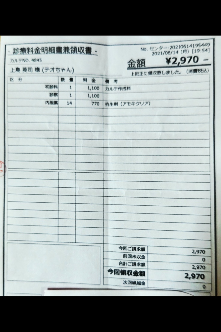 注射と抗生剤を処方してもらう。