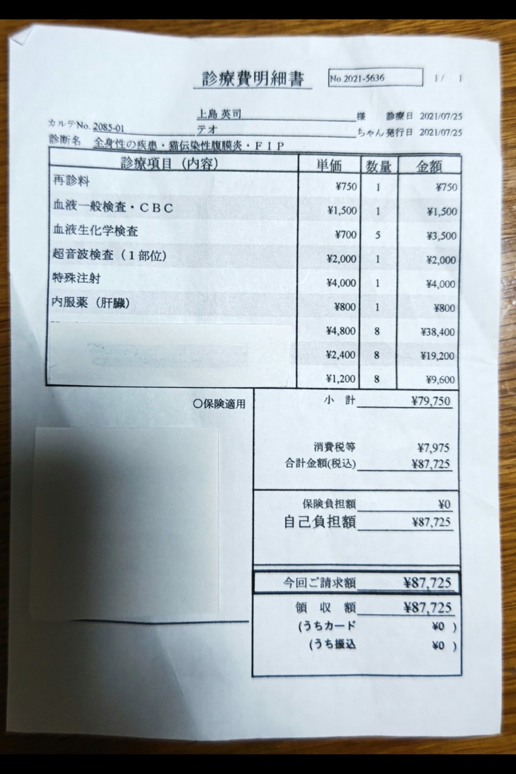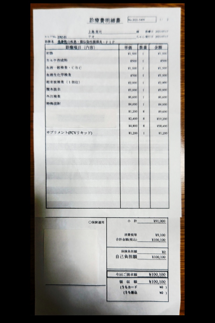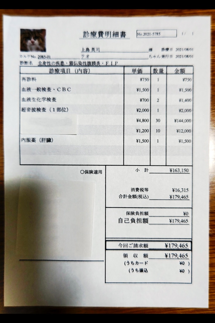 猫伝染性腹膜炎(FIP)を発症し、治療する為の費用