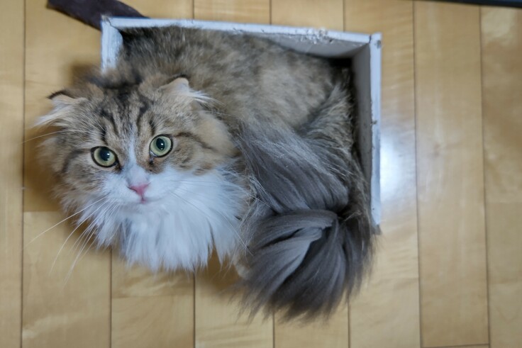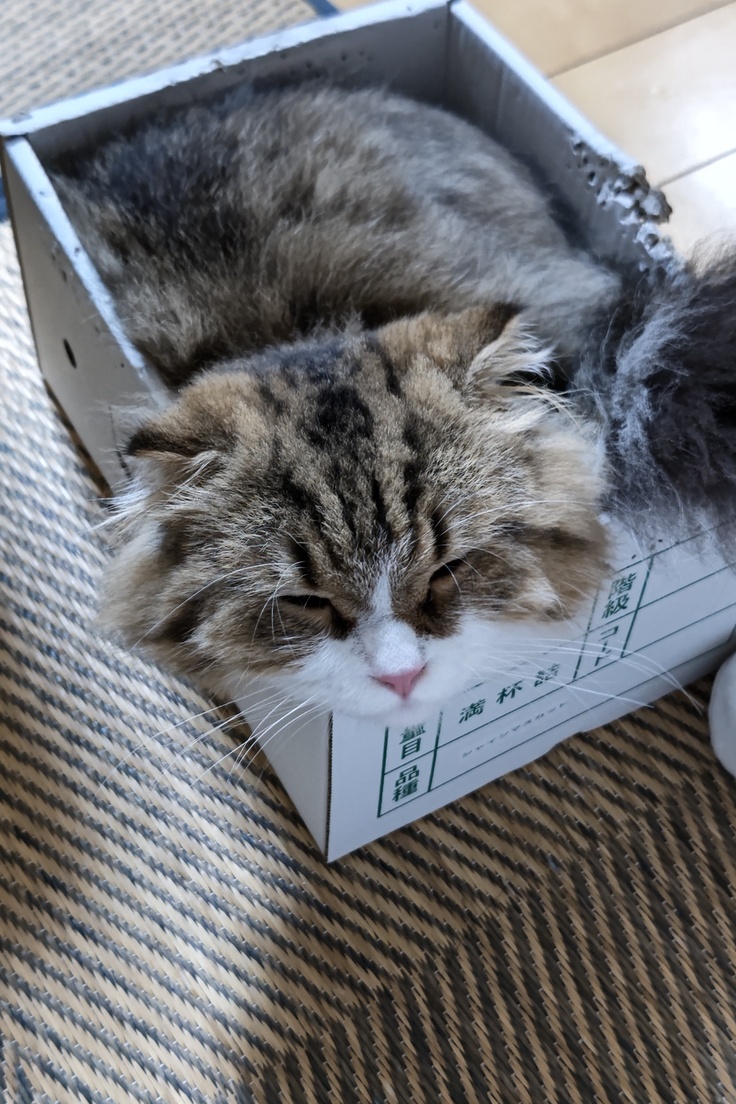何かといえば、その箱に入って寛いでおります。少し窮屈そうですが、それがまたテオ君にとっては心地良い場所なのかも知れません。