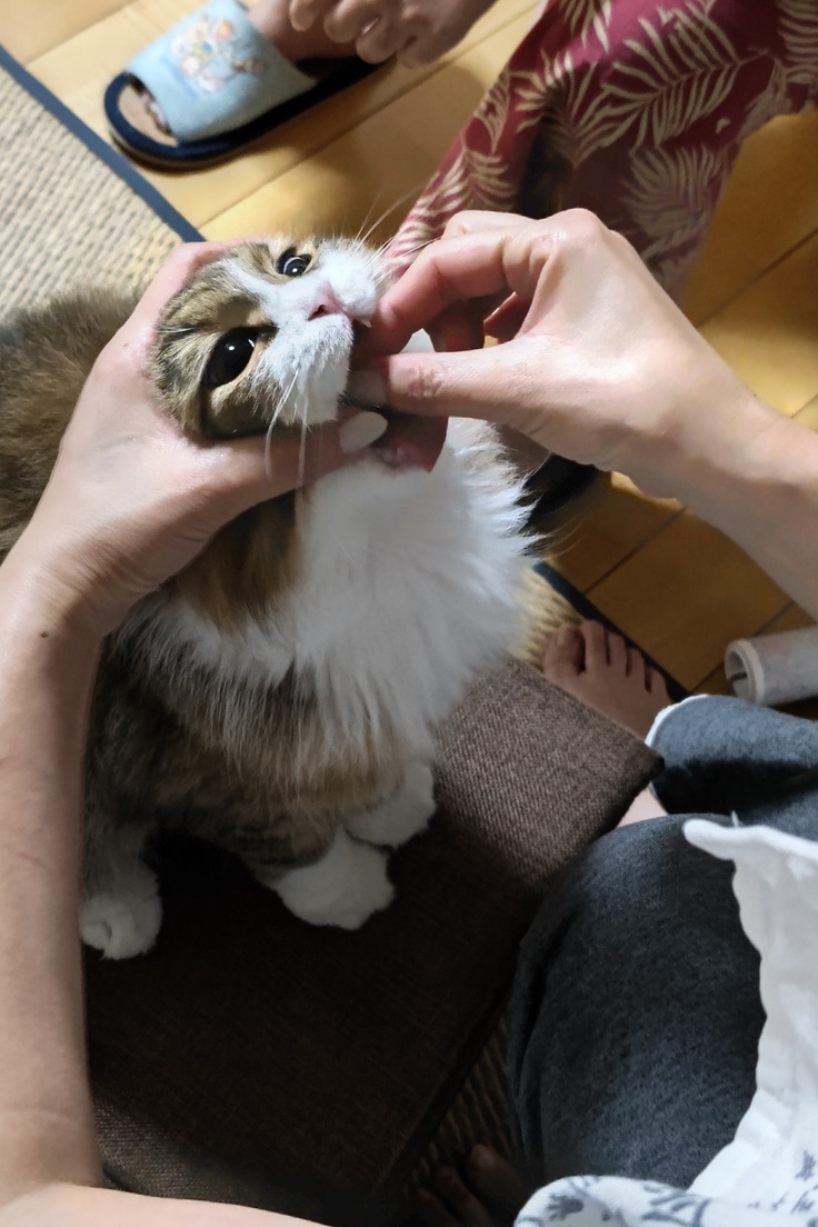 本日、投薬最終日となりました。少し強引に投薬している画像ですが、3ヶ月目突入した辺りから、投薬を嫌がるようになり画像のような方法でないと飲んでくれないのです。