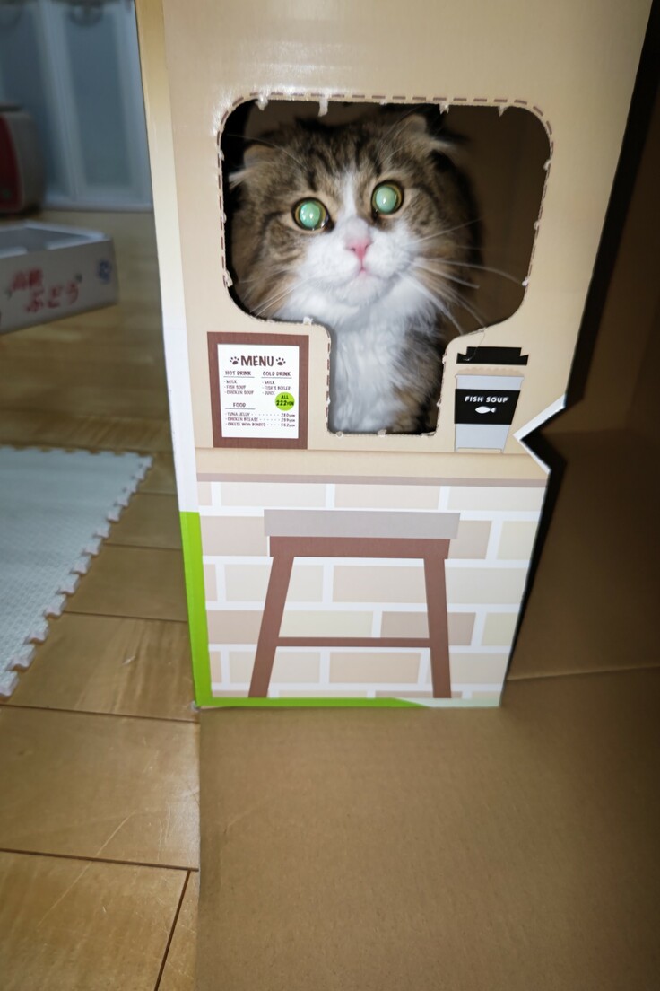 空き箱は、猫カフェになるらしくこちらもスタンバイ!早速ご来店頂きました。