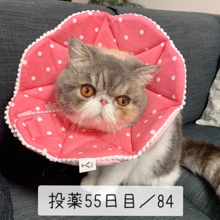 爪の薬を舐めてしまうので、薬を塗ってから浸透するまでの間だけエリザベスカラー装着!!