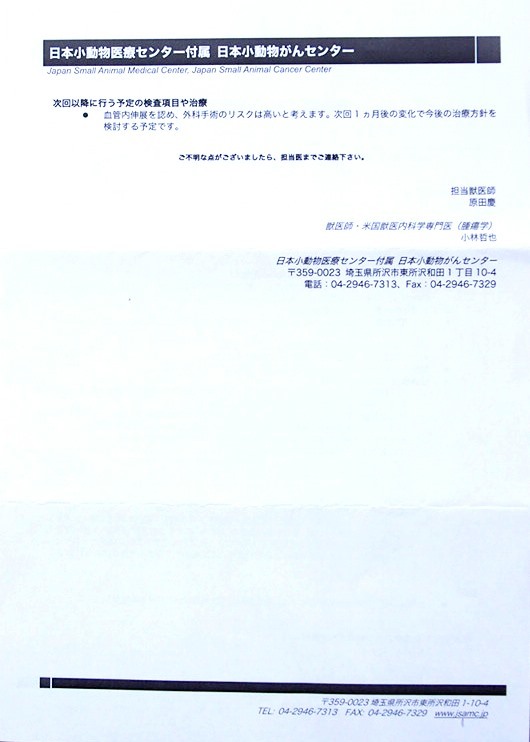 結論にいたりました。幸い転移はありませんが、患部血管からの大出血を
