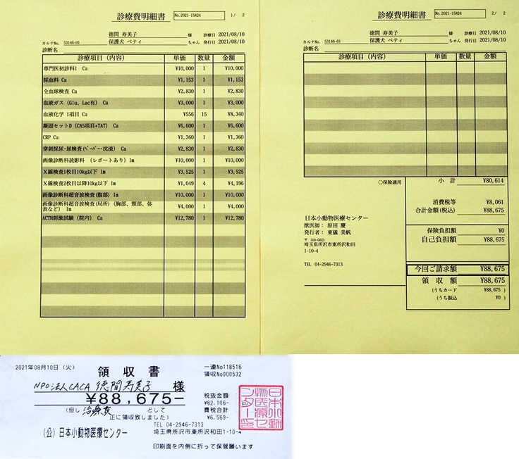いただいたご支援は、2021年10月末(調整中)までに、ベティーのCT検査・