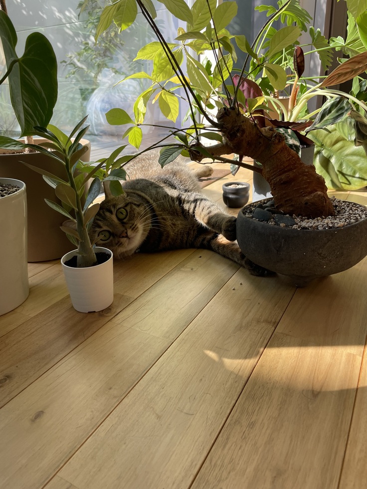 犬のお姉さんたちに猫パンチして怒られて逃げて、また猫パンチして…を繰り返して物を蹴散らしながら家の中を走り回ってます。