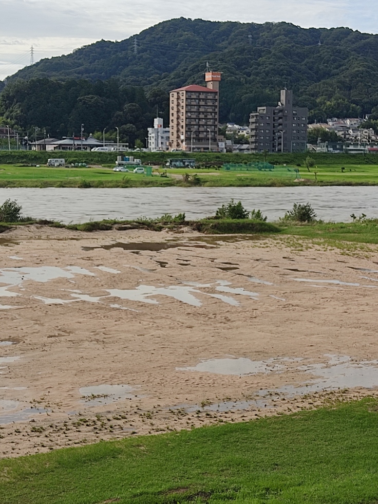 広島県大会(R3.8.8)で優勝をおさめ、さあ次は全国大会に向けてさらに練習に励もうと気持ちを新たにした直後に、集中豪雨が広島県を襲いました。この集中豪雨は毎年のようにやってきて、練習場所である太田川河川敷を濁流が飲み込み、グランドを荒れ地にします。今年も野球ができる環境ではなくなってしまいました。