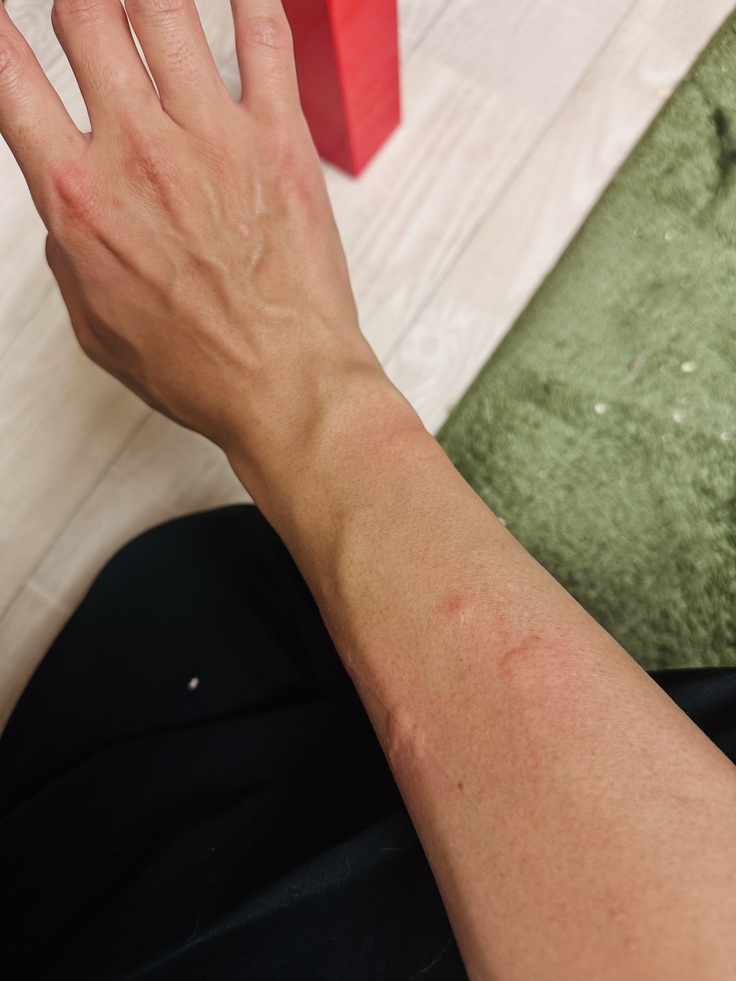 姉との電話が終えた後、私の右手はところどころにミミズ腫れが浮かび上がっていました。