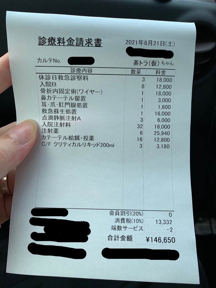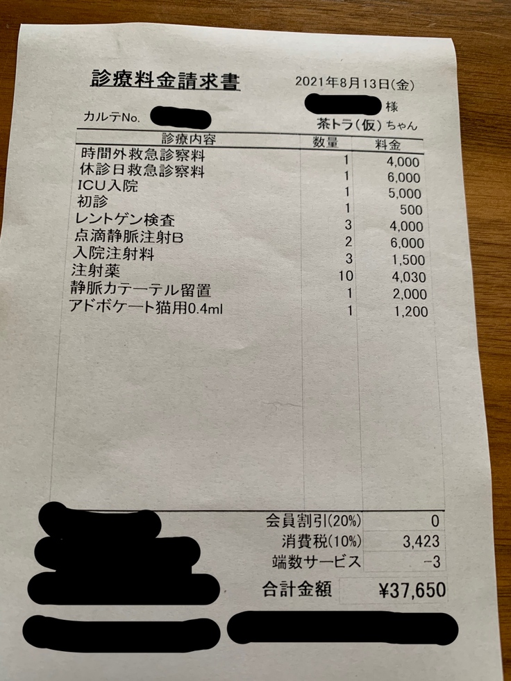 保護猫ちゃんの治療費8月13日付 及び 8月21日付の請求金額の支払い、及び今後発生する手術費の支払いに使わせていただきます。