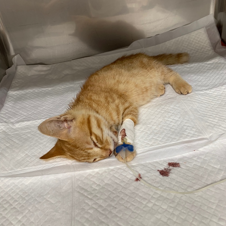8月12日の夜、実家の近所を散歩していたところ、茶色の子猫ちゃんが血を流して道路の端に横たわっていました。