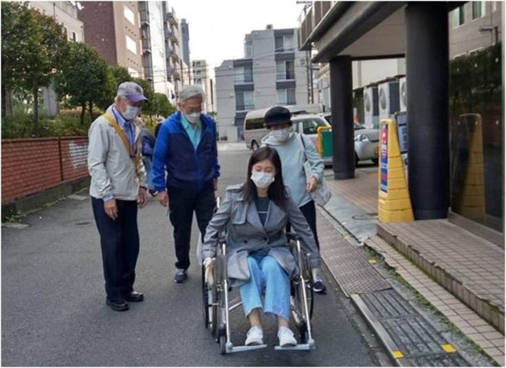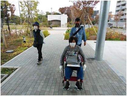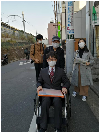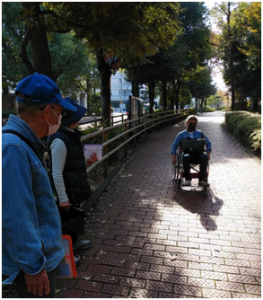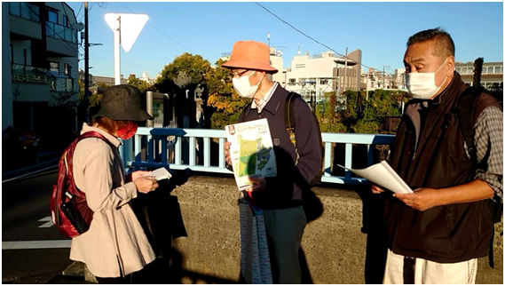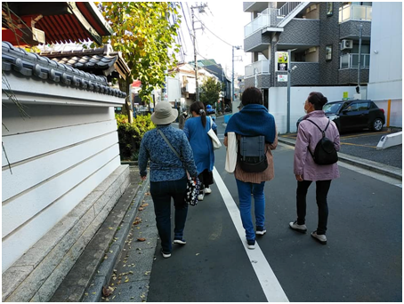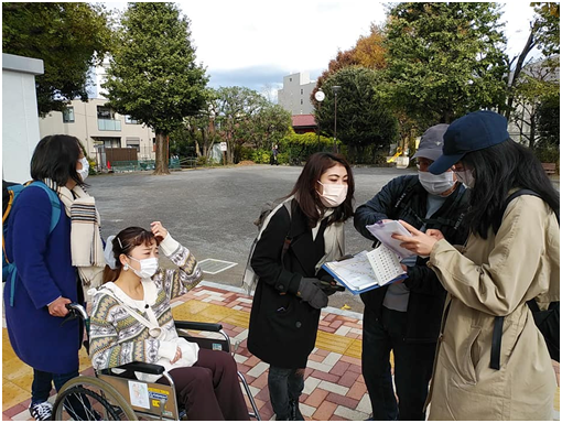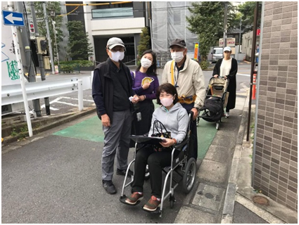 ユニバーサルデザインマップ作成講座実踏です。鍋横チームは二回目の実踏に臨み、桃園緑道を西から東に歩きました。全員が自走体験をするなど、実り多い実踏でした。筋肉痛が心配ですね。