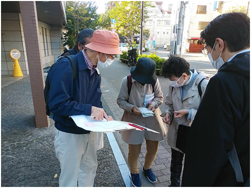 ユニバーサルデザインマップ作成講座の実踏が進んでいます。11/5は、南中野チームが中野通りの東側を回りました。1年振りで色んな所で変化をしていました。新しく出来た公園もあり、収穫大でした。