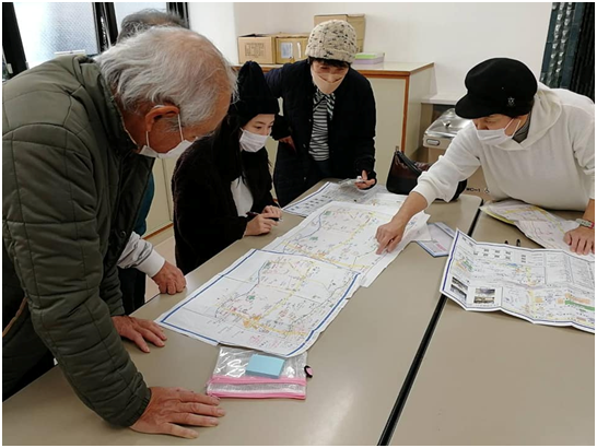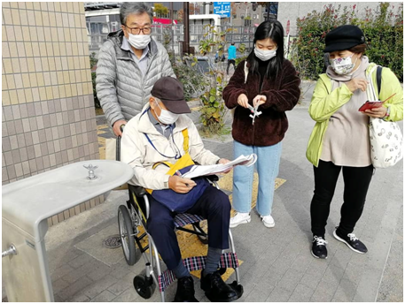 ユニバーサルデザインマップ作成講座実踏、南中野チームからも調査の様子が届きました。昨年との違いを念入りに・・