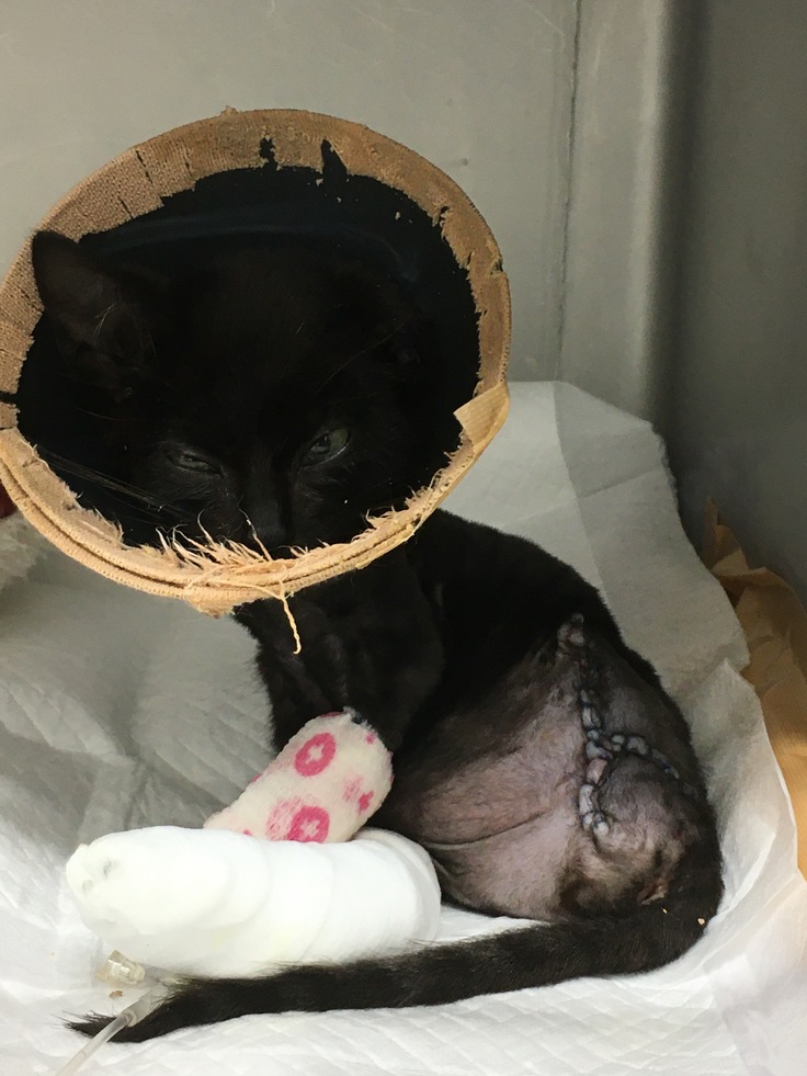 先月、両後ろ脚を怪我し更にカラスに襲われていた生後1ヶ月半~2ヶ月の仔猫を保護しました。