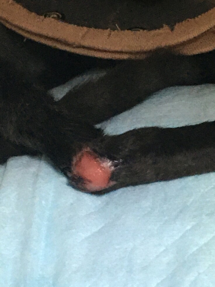 断脚部位の傷のあがりは良好ですが、後右脚の皮膚がまだ再生していません。