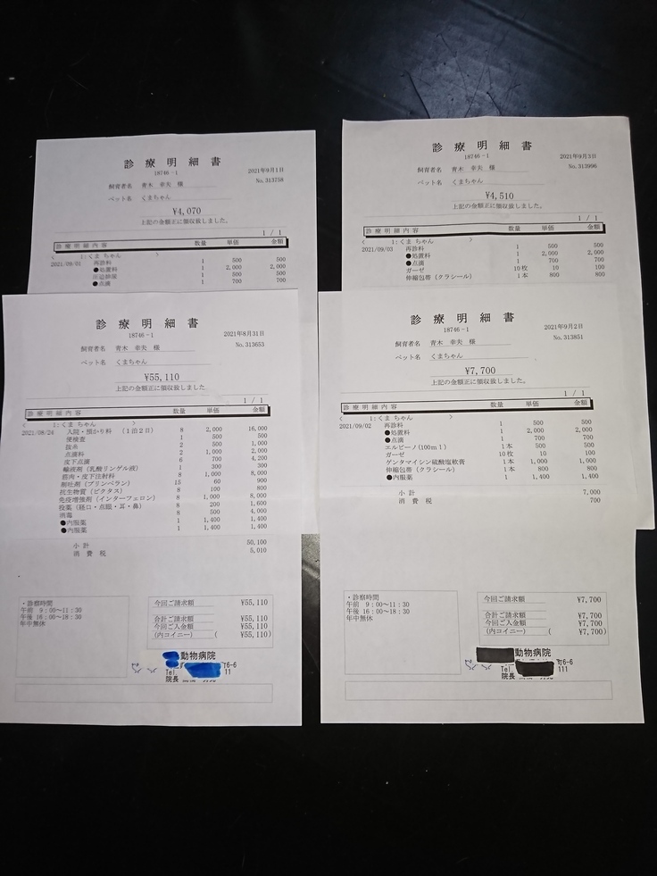 駆け込んだ動物病院で治療費が高額になることは初めに伝えられましたが、治療を断念することはこの子の命を諦めることになってしまい、それだけは出来ませんでした。