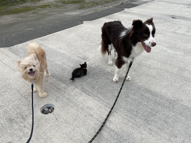 他の子達と比べると筋力がかなり無いマック😭しっかりと歩けるようになる為にわんこ達と一緒に人のいない見晴らしのいいひらけた海へ筋肉トレーニング!!!