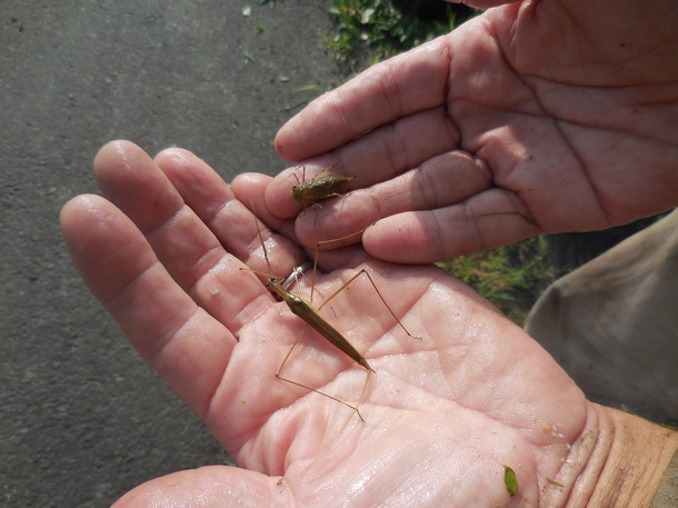 田んぼの中には、ミズカマキリとヤゴもいました。