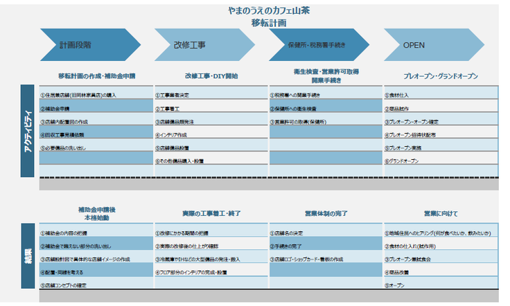 コミュニティカフェ移転に伴う店舗物件の改修費、備品購入費、設備投資、土地購入、家屋購入、その他経費