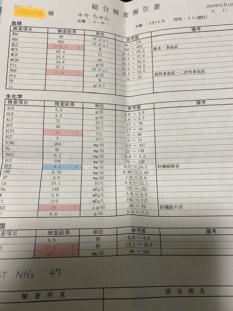 獣医師の先生の話だと、BUNが少し低いのは食事制限でタンパク質を避けているから低い可能性があるとの事で、通常の食事に戻して様子をみるとの事でした。