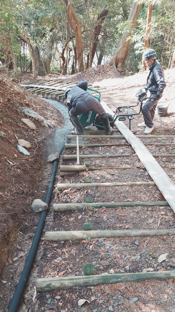 階段の修復ならびに新設、側溝の設置により、これまでよりも安心して参拝いただけることと思います✨