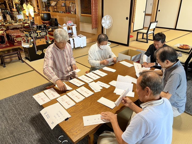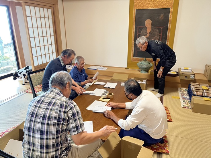 大変お待たせ致しましたが、ご支援に対する返礼品の発送作業を、保存会並びに両山寺役員と共に行いました。