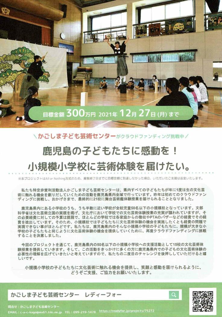 【第6弾】鹿児島の児童50人以下の小学校に文化芸術体験を届けたい!