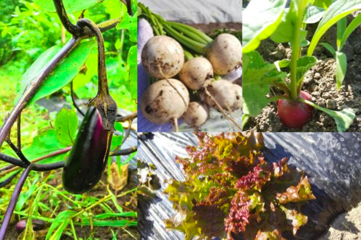 地域の方に耕作放棄地の畑と田んぼをお借りして、「相川ブランド」の農産品を一緒に作り上げるプロジェクトを進めています。すでにブランド化が実現した減農薬米「てとて」や、まだブランド化には至っていませんが様々な無農薬野菜を育てています。