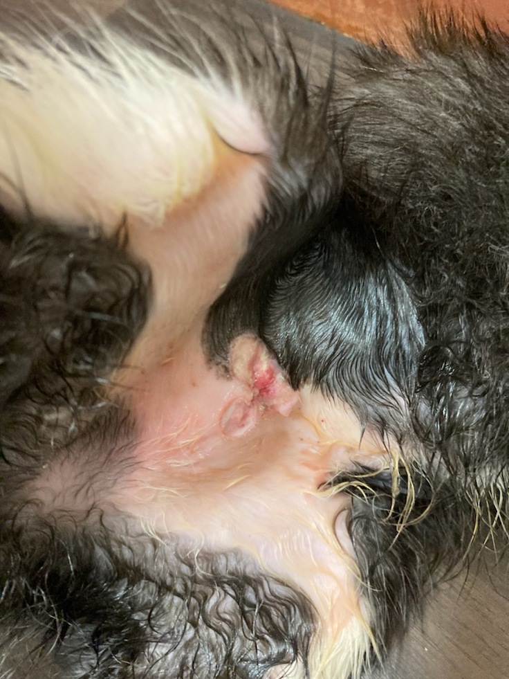正直、この手術した子は、オシッコによって皮膚の状態がずっとこんな感じで治ってはまた感染して潰瘍出来ての繰り返しで