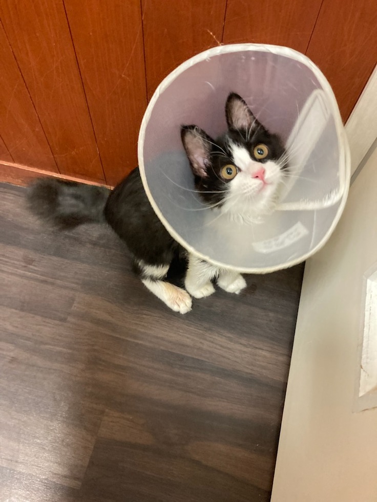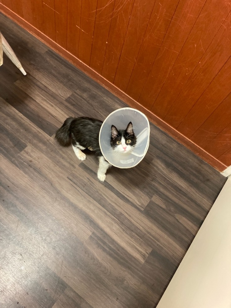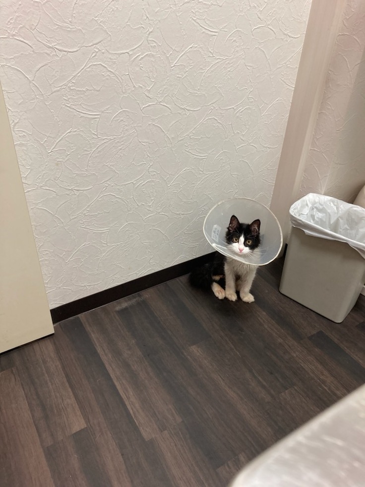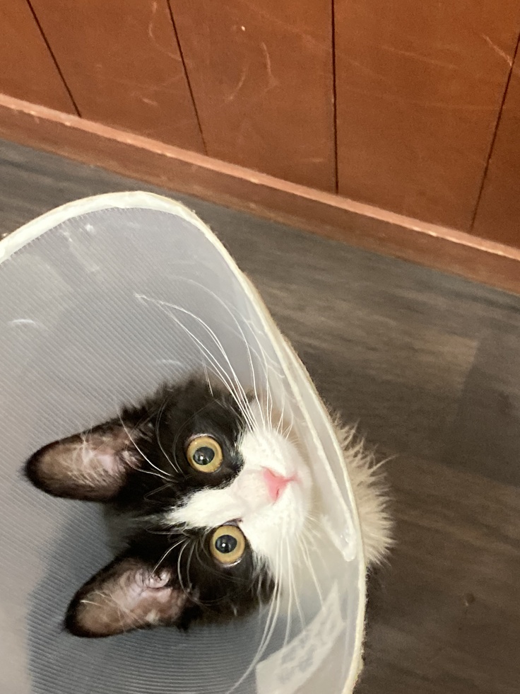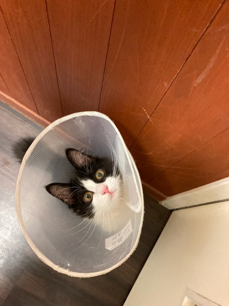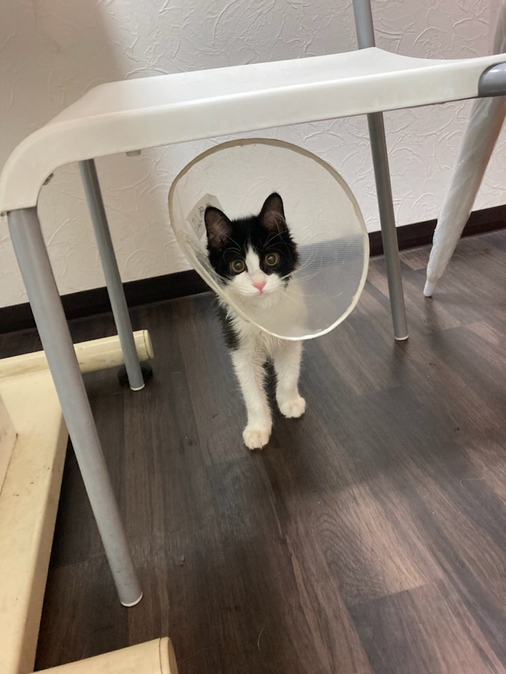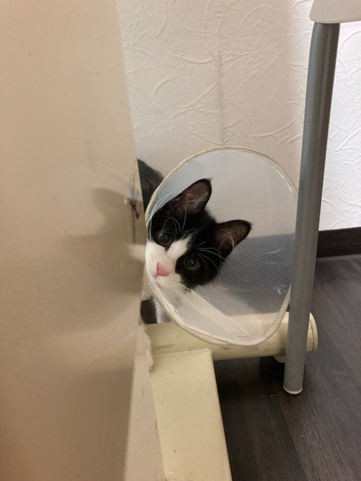 エリザベスカラーをぶんぶんとあちこち当てまくり、
