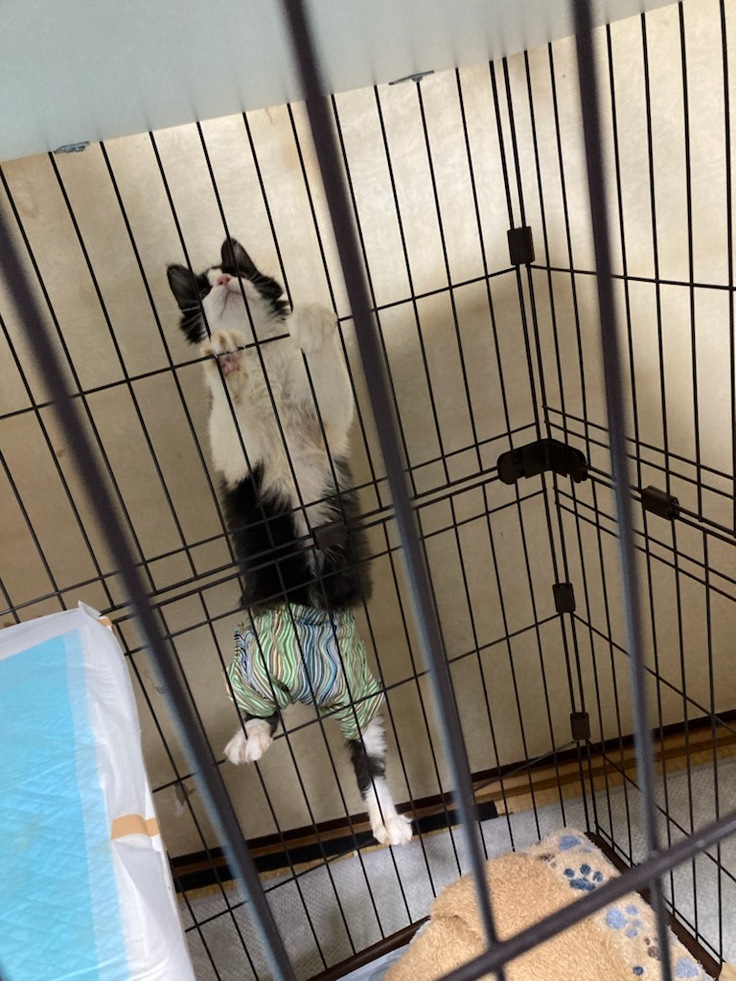 娘の手作りのオムツをして、3段ゲージでハチは嬉しそう。