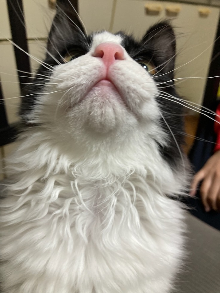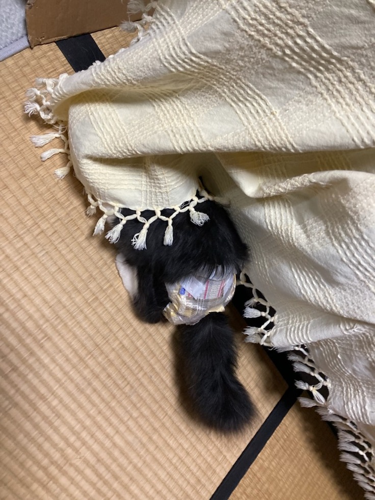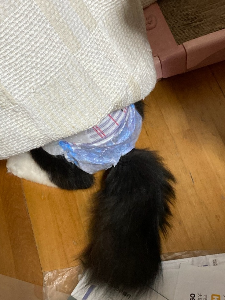お腹の潰瘍はなかなか治らず、今日は出血してた。舐めようとしてカラーを当てるので、擦れて出血。