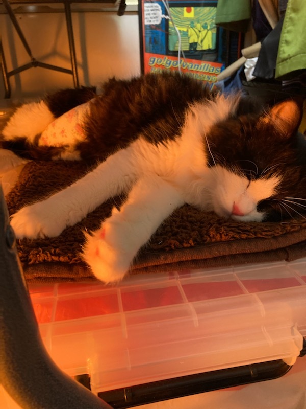時には、娘の服飾の課題の製作部屋で、電気ヒーターにあたりながら