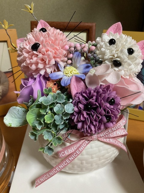 「お空から見守っていてね」のメッセージと共に素敵なソープフラワーのお花が届きました。