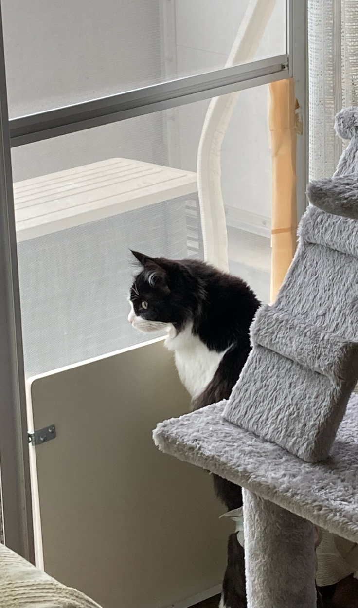 こないだ網戸をぶち破って、ベランダへ脱走してから