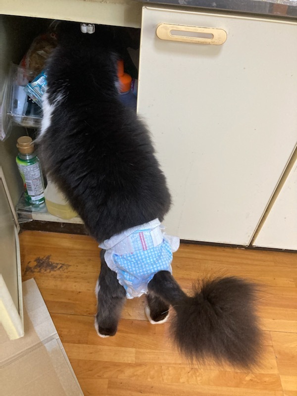 しっぽが爆発してる、オムツ姿の泥棒が入りました。