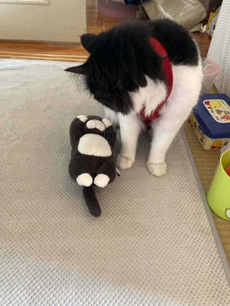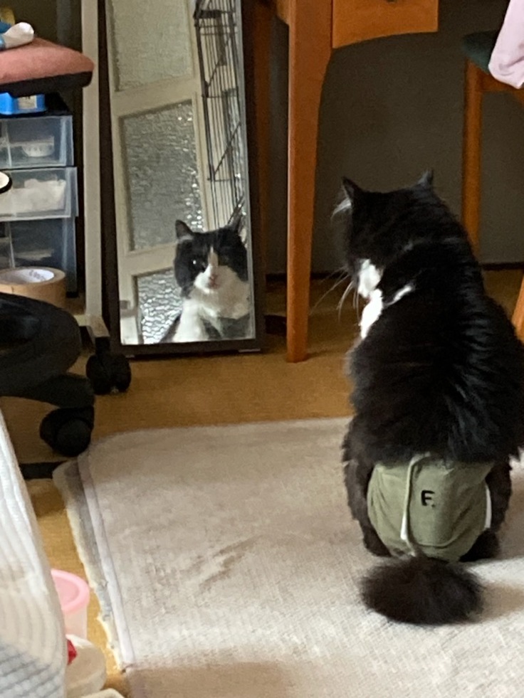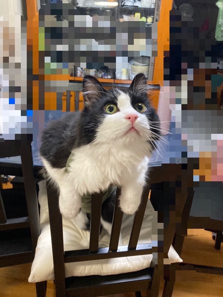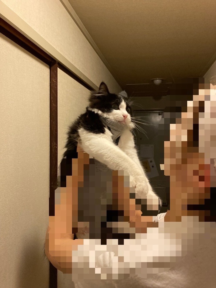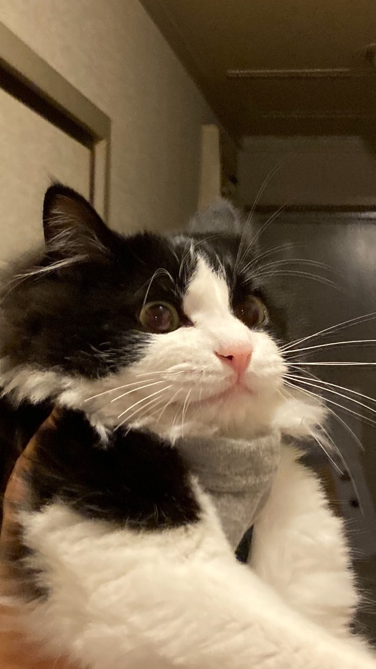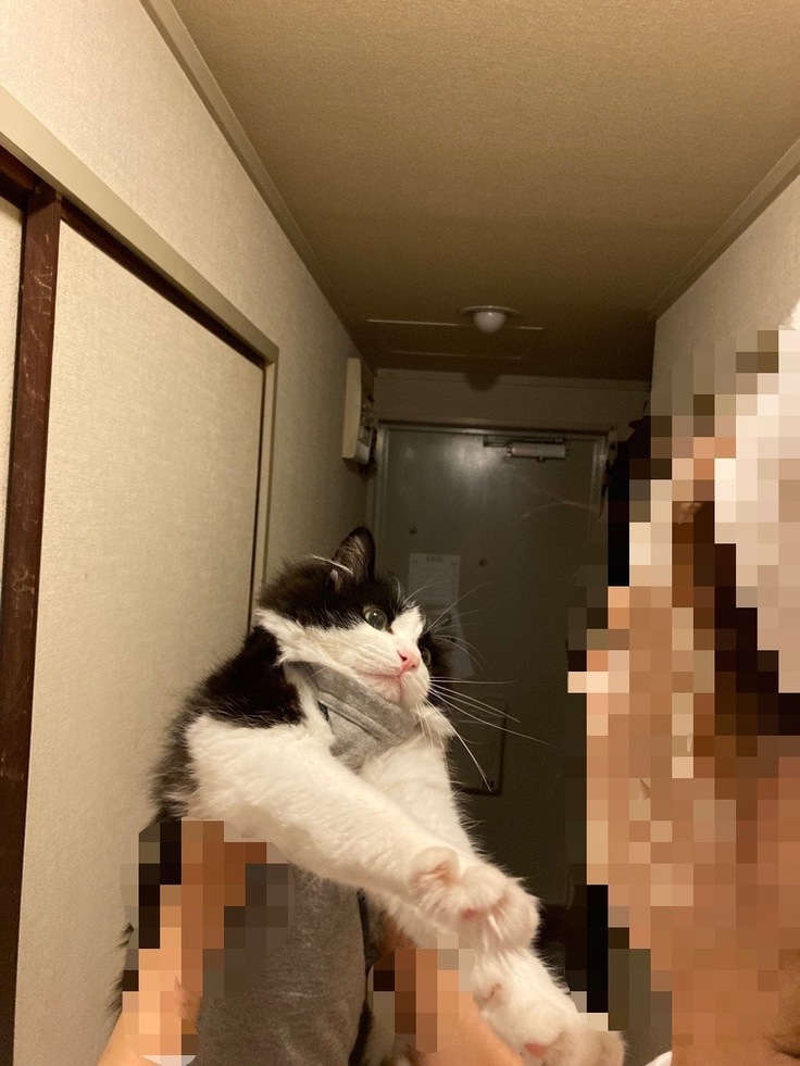 お風呂上りに めったにしないパックをして ハチを抱っこしたら