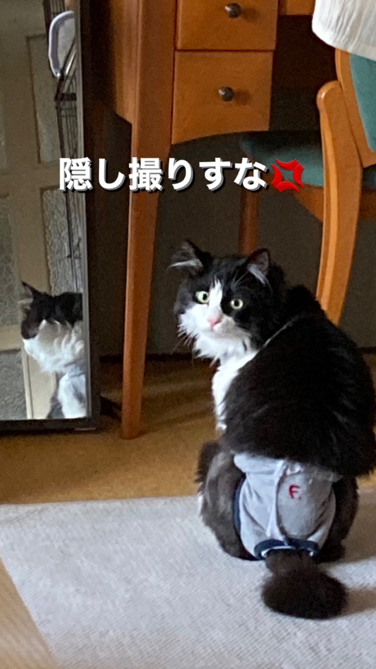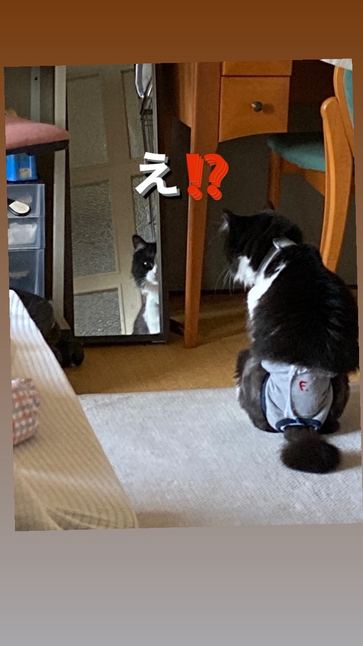ハチは 毎日 相変わらず自分の姿を鏡で確認しています。