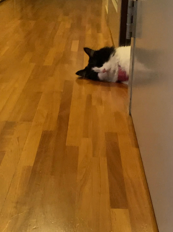 ハチは 相変わらずゲージから出ると すぐ廊下でびろ~~~~~~~んと伸びます。