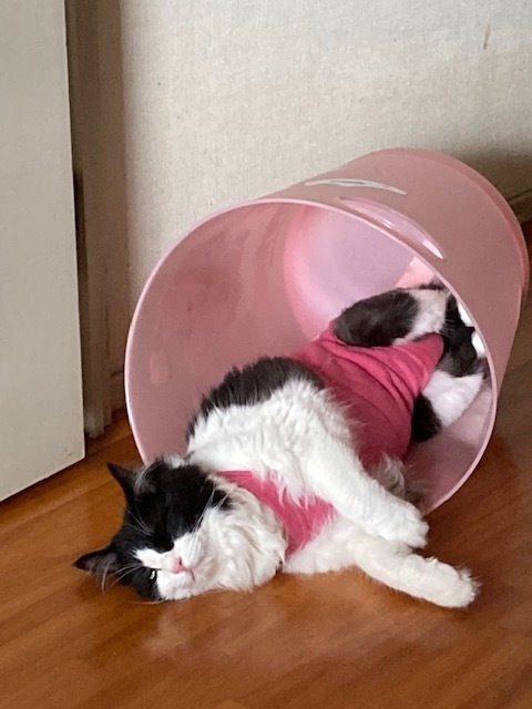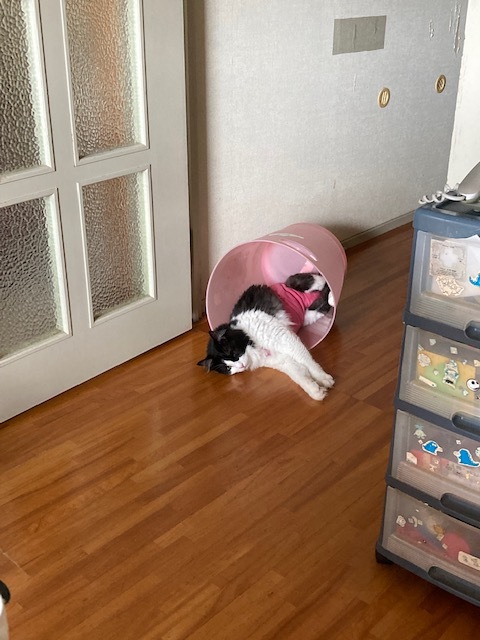 エリザベスカラーがなかなか外せなくて、一生つけたまんまの猫生を送ると思っていたけどね。