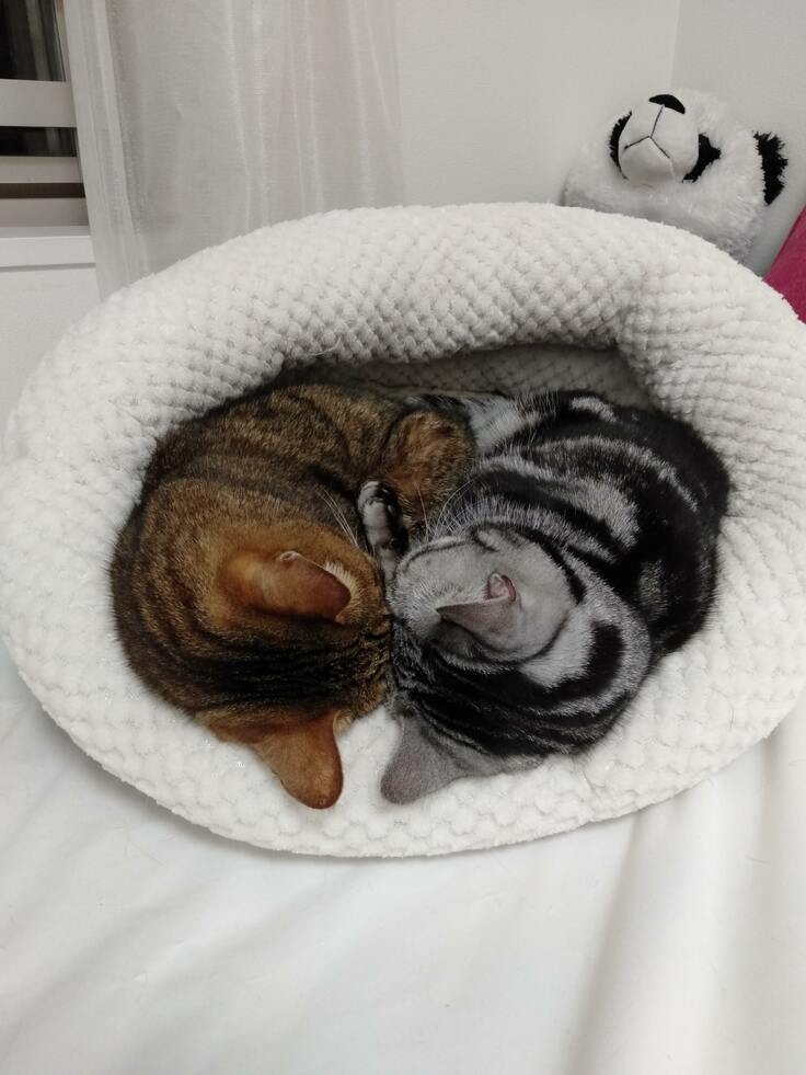 この二人、本当に仲良しです。いつも一緒に寝ています。トトが病気になってから、あーちゃんはますますトトに優しくなりました。