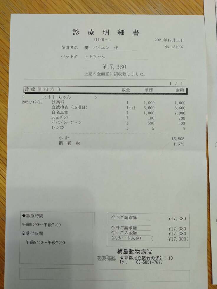 今後引き続き毎日在宅で皮下点滴を続けることになりました。私も主人も普段サラリーマンでなかなか時間厳しいですが、皮下点滴を続けることに頑張ります。トトが少しでも楽になると思い、頑張って続けていきます。