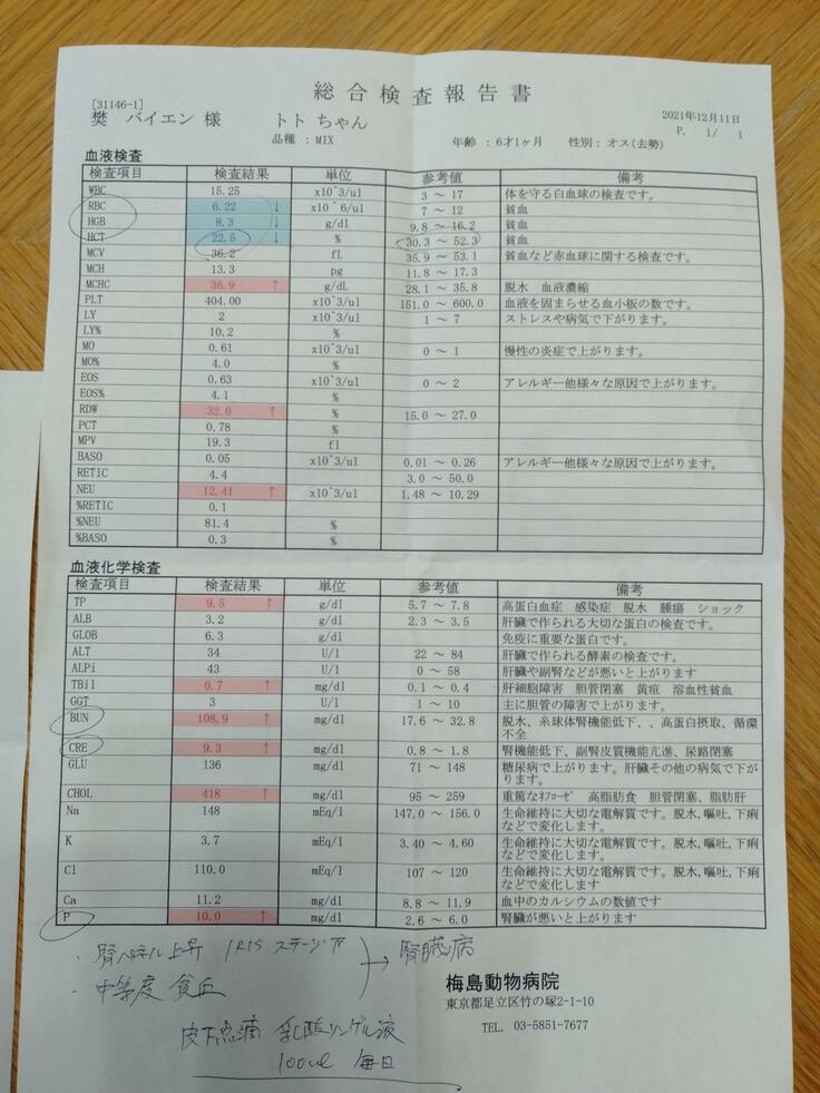その他、貧血傾向がありますので、今後増血ホルモン剤の注射もしなくてはならない状況にあります。