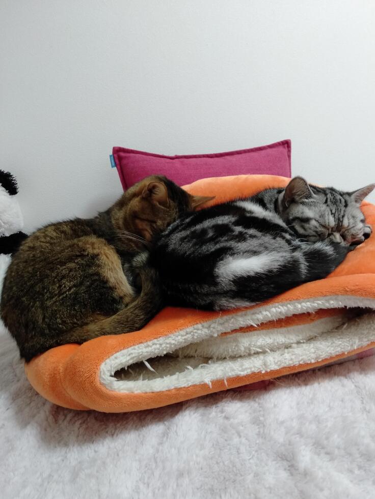 写真(1月18日)トトとあーちゃん、完全にカボチャを潰して寝てます。