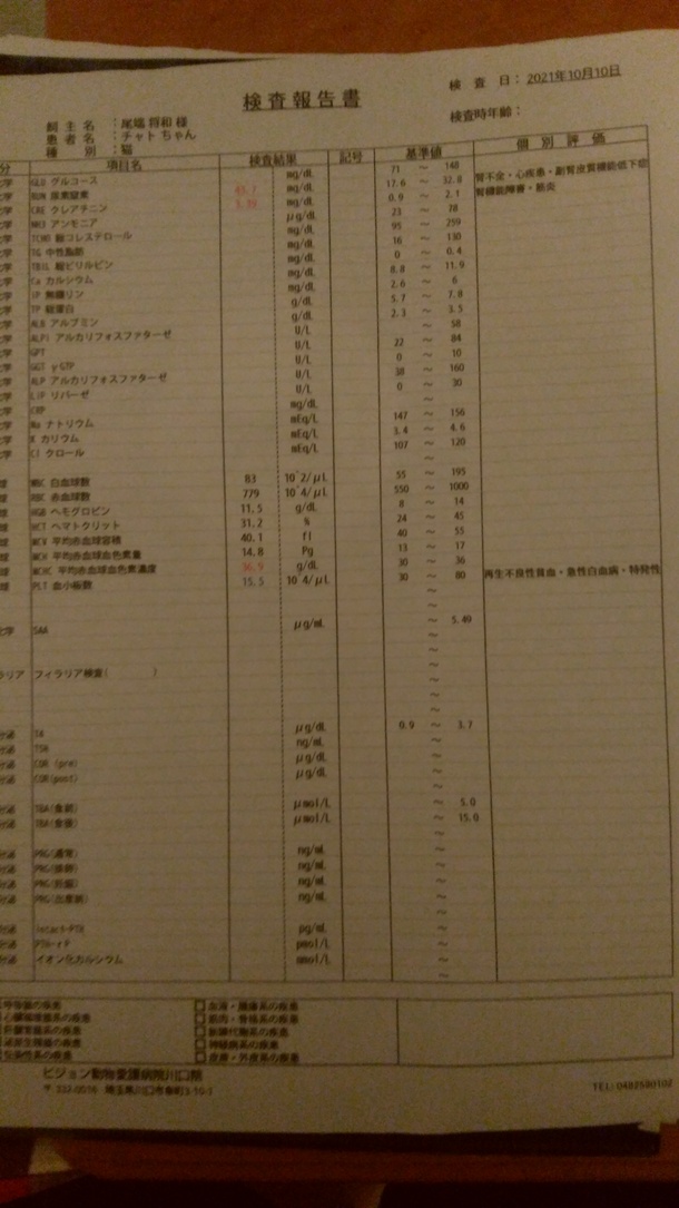 中には腎不全でも長寿猫となることもあるとのことでした。少しでも健康で幸せな生活を共に送れるよう、引き続き治療に全力をあげていきます。