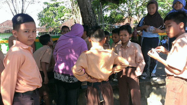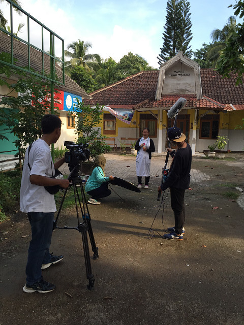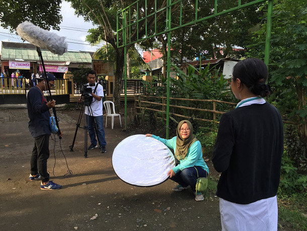さて、いよいよ柳澤さんの「ロンボク島保健情報」の撮影です。柳澤さんの背後の建物はプスケスマスPuskesmasと呼ばれる市が運営する保健所です。