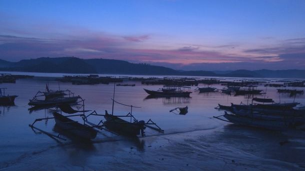 まずは、サーフィンで有名なGerpuk港の朝焼け